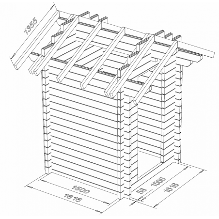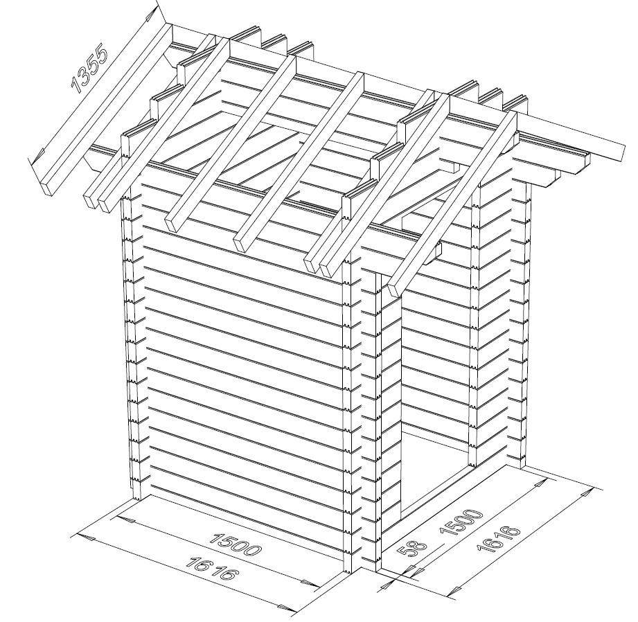 Meidän kautta hirsikehikon lisäksi voi tilata takaa avoinna olevan varastotyylisen oven.