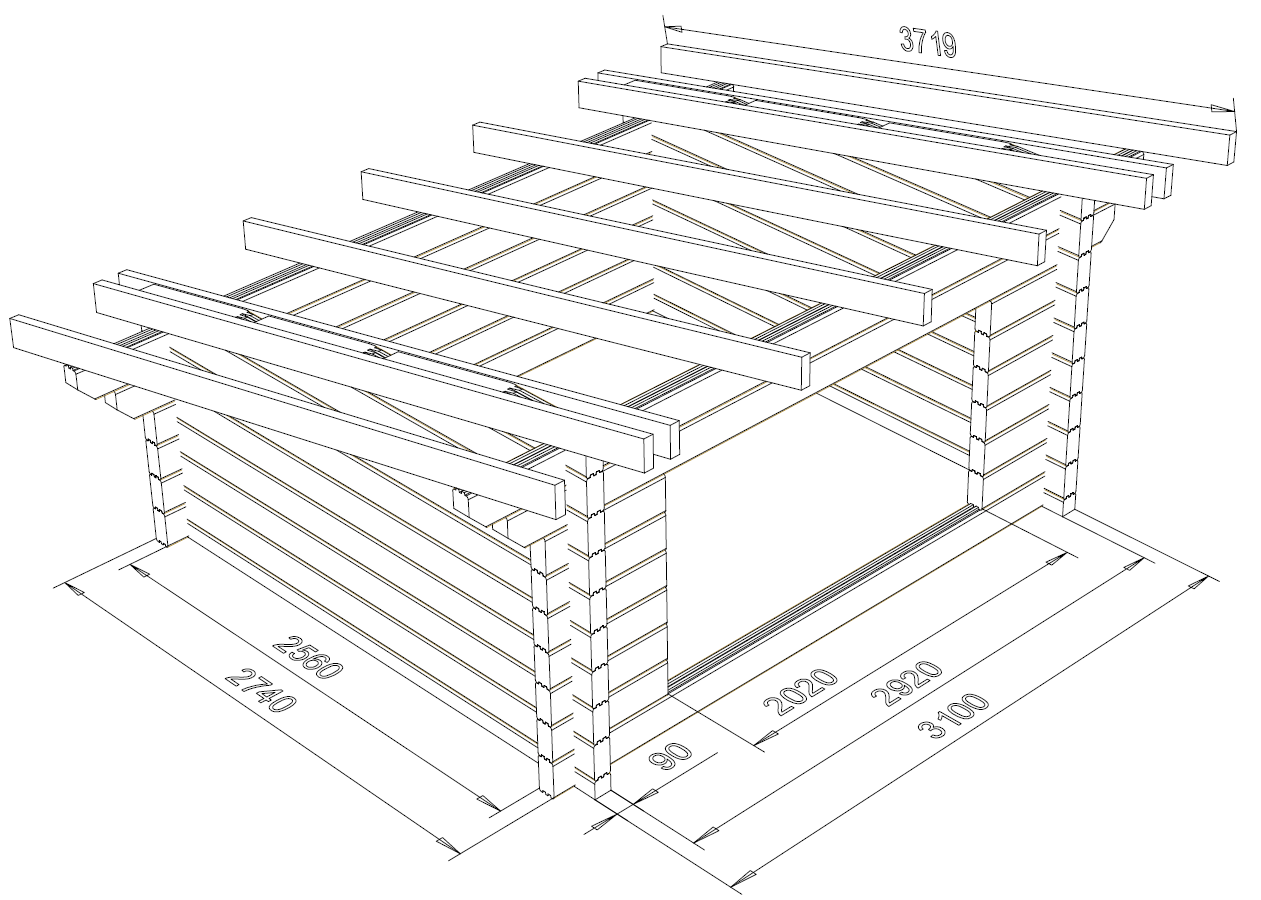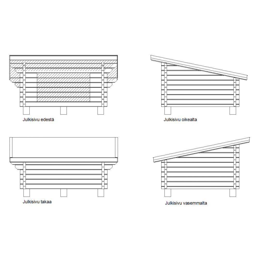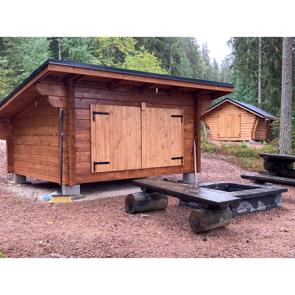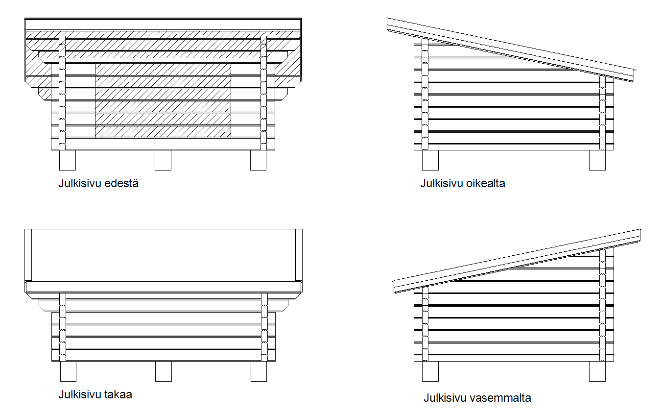 Laavu Loisteen hirsikehikko piirrettynä lamellihirrestä 90x195