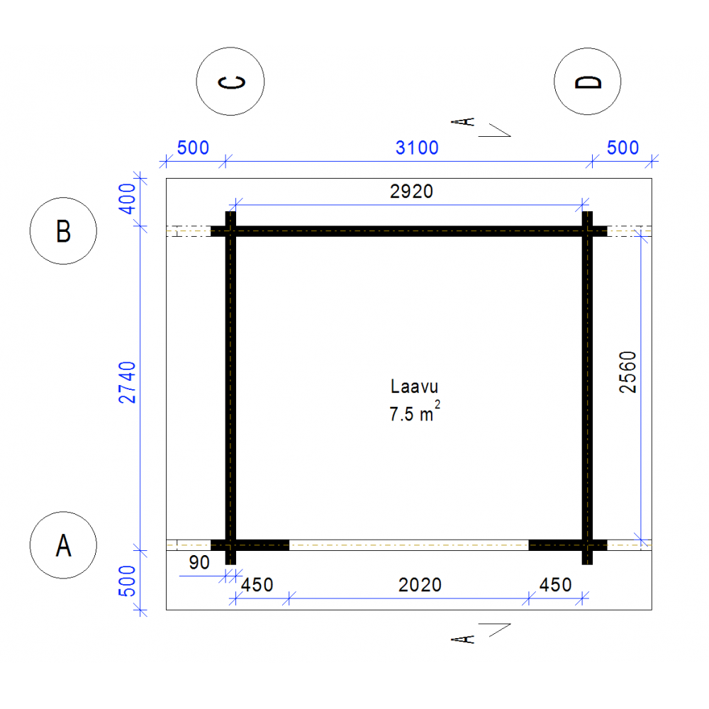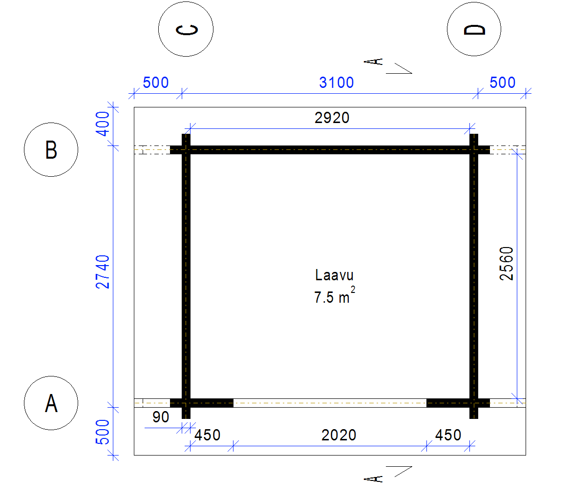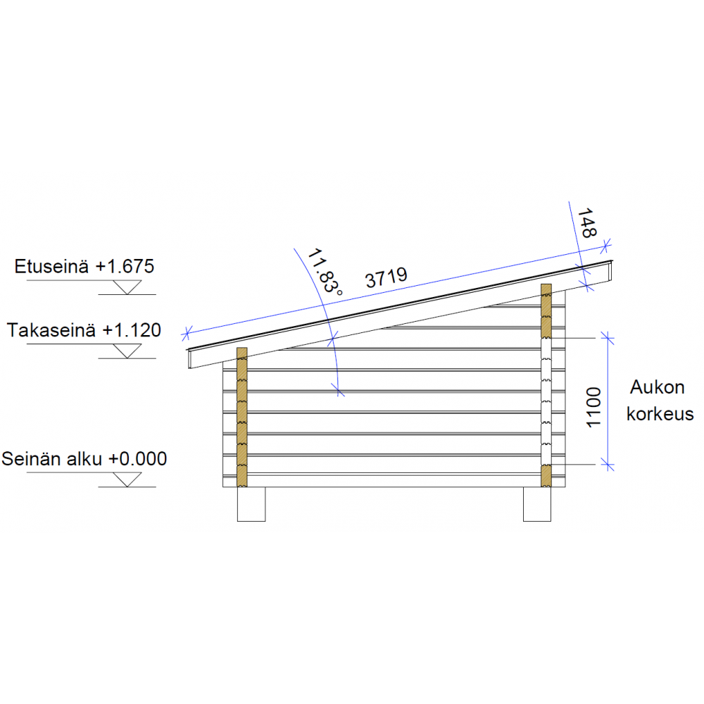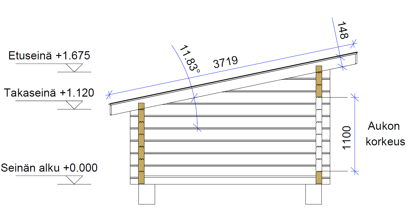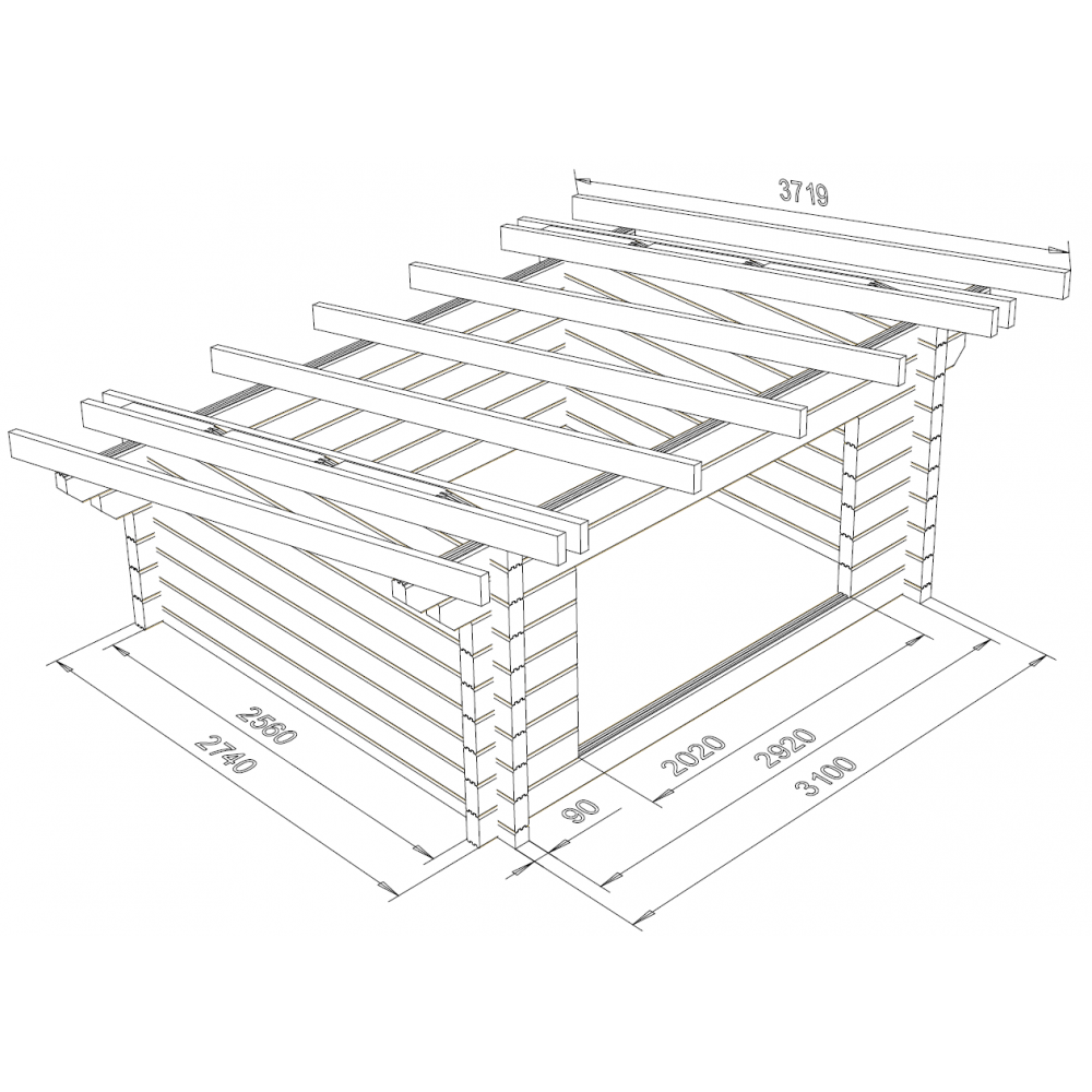 Laavu Loisteen hirsikehikko piirrettynä lamellihirrestä 90x195