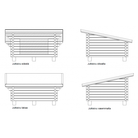 Hirsitoimitus ei sisällä lueteltujen tarvikkeiden lisäksi muita osia, kuten palkkikenkiä, kattokulmia tai perustustarvikkeita. Ovet ja ikkunat, muu puutavara ja muut tarvikkeet tilataan lisätilauksena verkkokaupan valikoista tai erikseen lisätilauksena myyntipalvelustamme.