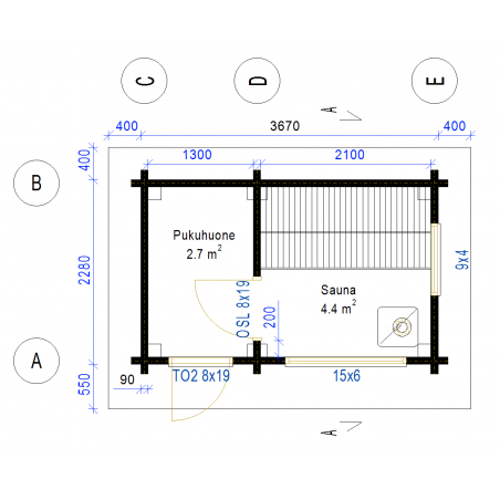 Tässä versiossa Saunan ikkunaa kasvatettiin hieman asiakkaan toiveesta. Tilaukset myyntipalvelun kautta.