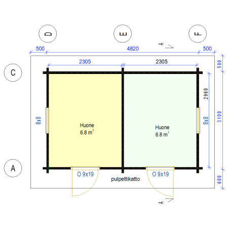 - Sisältää tarvittavat poraukset vaarnatapeille ovien ja ikkunoiden reunoihin rakenteen salliessa